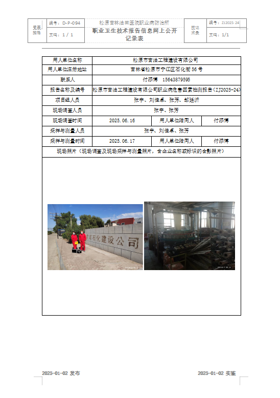 松原市吉油工程建设有限公司职业病危害因素检测报告(ZJ2025-24)