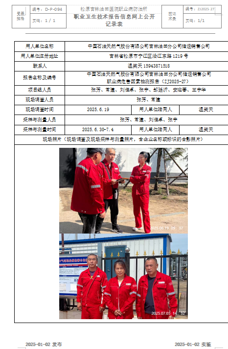 中国石油天然气股份有限公司吉林油田分公司储运销售公司职业病危害因素检测报告(ZJ2025-27)