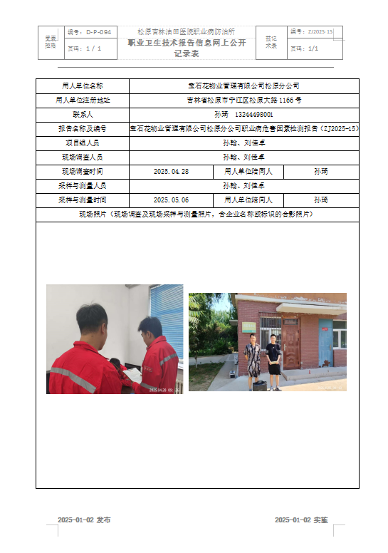宝石花物业管理有限公司松原分公司职业病危害因素检测报告(ZJ2025-15)