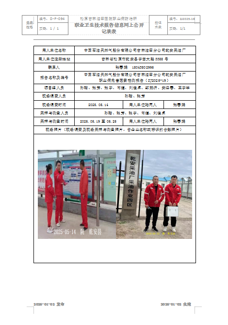 中国石油天然气股份有限公司吉林油田分公司乾安采油厂职业病危害因素检测报告(ZJ2025-19)