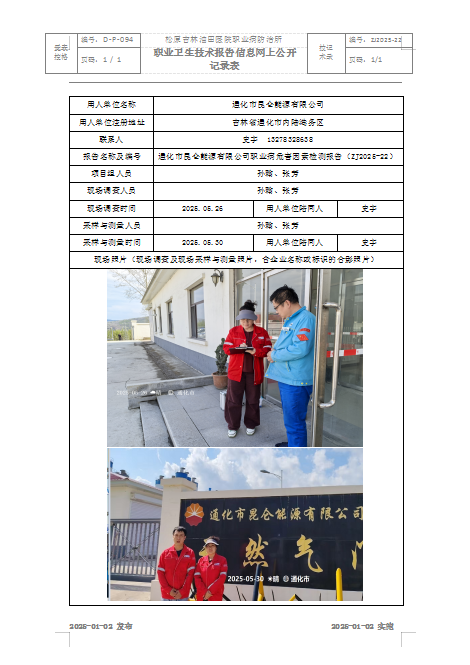 通化市昆仑能源有限公司职业病危害因素定期检测报告 (ZJ2025-22)