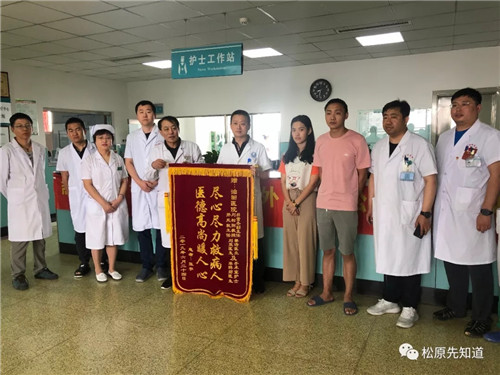 据了解,6月15日凌晨,松原吉林油田医院接到一名年轻女性患者,刀刺伤,入院时已神智不清,血压测不清,急诊行手术探查,术中发现胃前后壁贯通、胰腺断裂、左肾破裂,左上腹不知名血管断裂,大量出血,无法控制,凌晨5时,电话请示合作医院吉大一院肝胆胰外科刘松阳教授,刘教授立即驱车前来,在患者血压测不到、脉搏140次/分情况下组织抢救,成功止血,挽救了年轻的生命及两个家庭,现患者顺利康复。这位危重女患者就是这位送锦旗男士的妹妹。他对刘教授不远百里相救的白求恩精神及吉林油田医院普外一科的全体医护人员的辛劳感激不尽!