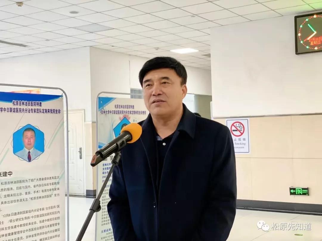 松原吉林油田医院党委书记兼院长石文杰在仪式上致辞,他代表全院向各位专家教授的到来表示诚挚的欢迎和衷心的感谢!他表明了持久合作的治院理念,表达了对合作伙伴的谢意和对医院美好未来的信心与希冀。在接受融媒体采访时,他说,深化体制改革以来,与专家团队进行业务合作是我们医院谋求更好更快发展的重要举措。今后,我们要不断加强学科建设,依靠专家团队的帮助,通过合作、学习、带动,全面提升我院的医疗水平,把我院打造成吉林省西部地区最具影响力,最具规模,综合实力最强的医院。