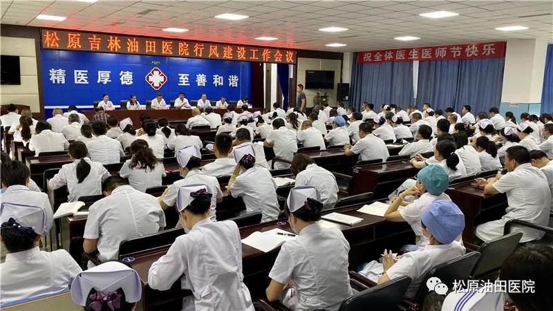 8月31日下午,松原吉林油田医院在十四楼会议室召开行风建设工作会议。院领导班子成员,临床、医技科室主任、副主任、主治医师、护士长及运营助理,机关科室长及相关职能部门人员100多人参加了会议。