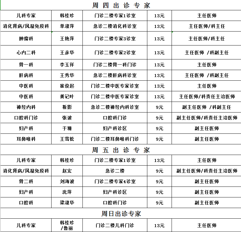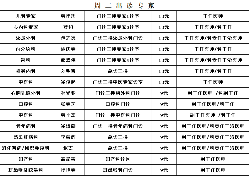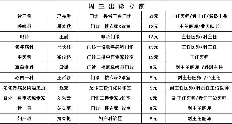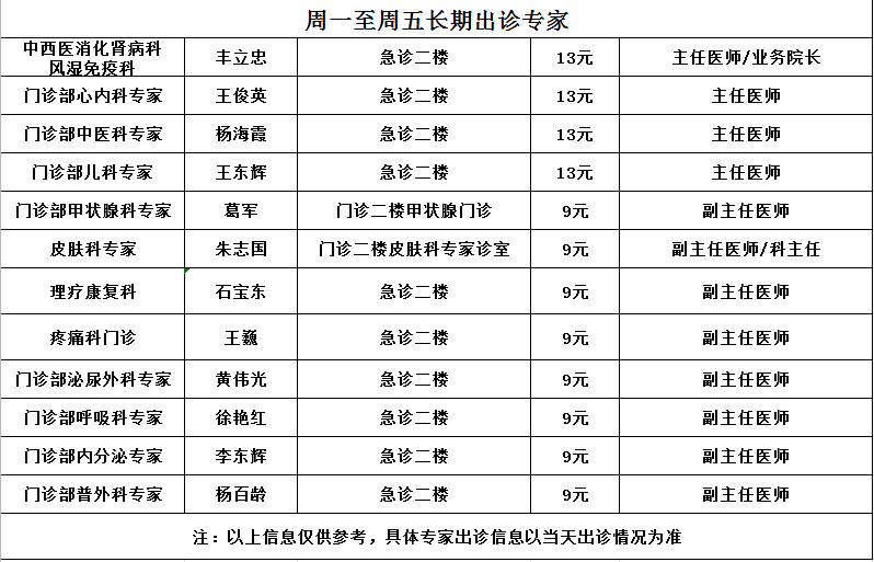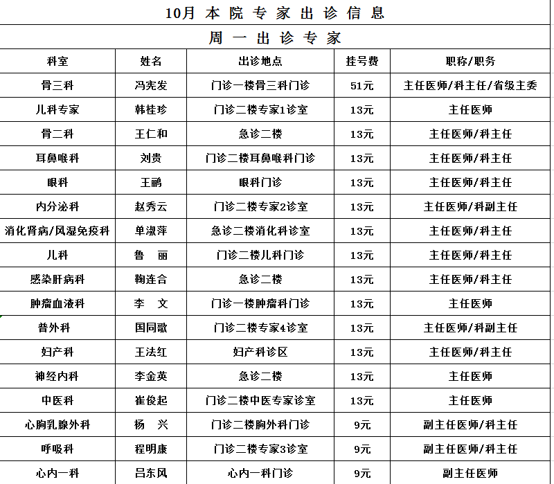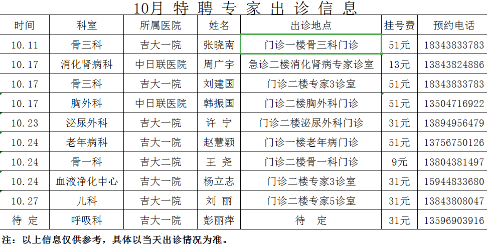 10月专家出诊信息