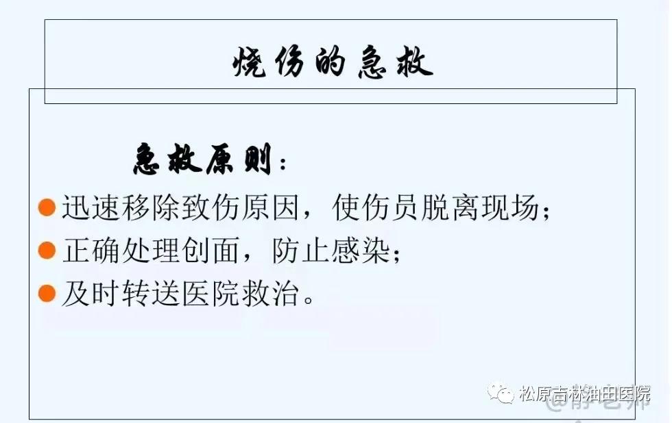 转送到专业治疗烧伤的烧伤专科医院进行进一步正规治疗。注意:以上的方法主要是针对面积不大,深度在- -度或二度的伤者的处理方法。