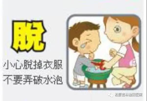 在充分的冲洗和浸泡后,在冷水中小心除去衣物。可以用剪刀剪开衣服,千万不要强行剥去任何的衣物,以免弄破水泡。因为水泡表皮在烧伤早期有保护创面的作用,能够减轻疼痛,减少渗出。由于烧伤后该部位及邻近部位会肿胀,要在伤处尚未肿胀前把戒指、手表、皮带、鞋子或其它紧身衣物去除,以防止肢体肿胀后无法去除,而造成血运不畅,出现更严重的损伤。