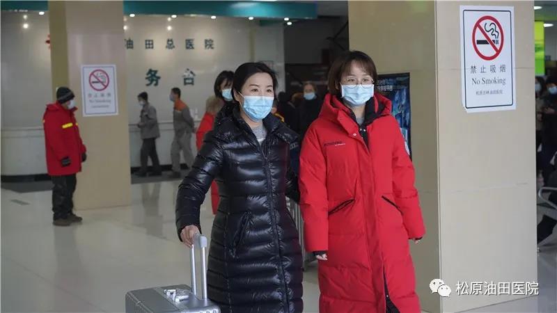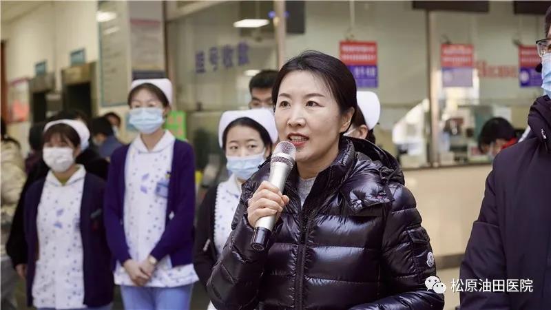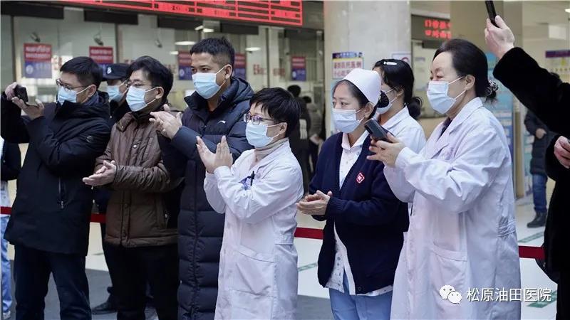 松原吉林油田医院副院长白玉雪及职能科室长、派员单位科室主任、医护人员及派员家属带着满满的牵挂和期待参加出征送别仪式。