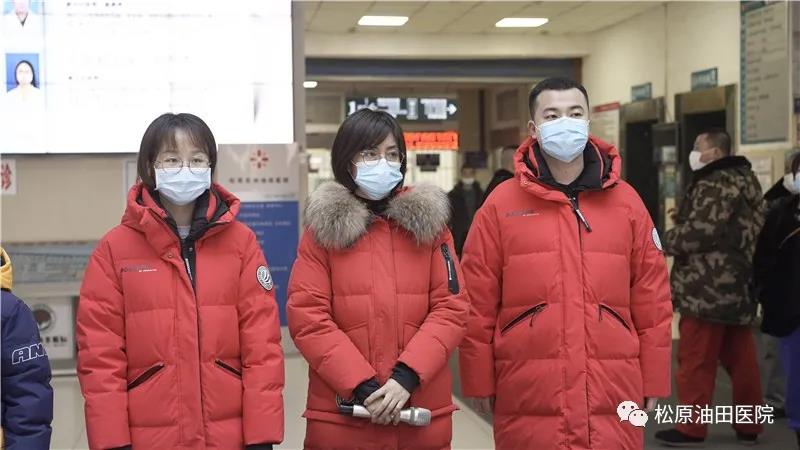 1月9日,松原吉林油田医院在门诊大楼举行简短而庄重的出征仪式,医院马晓杨、毛影、孙昌琦再次出征,与松原市其他兄弟医院一起前往天津援助核酸检测工作。