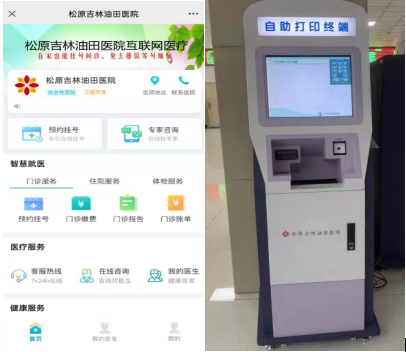 关注“吉林油田总医院”公众号,可线上进行咨询、就诊指导。手机端自助开具核酸检测,查看检验、检查报告。医院大厅的自助机可自行打印检验结果报告。