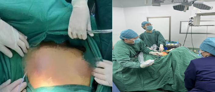 6月11日中午,经过充分的术前准备,在麻醉科和手术室的紧密协作下,普外一科吕雪冬团队成功为李女士实施了“经乳晕腔镜甲状腺癌根治术”。此手术的腔镜入路是在患者乳晕处做弧形切口,采用皮内缝合,不用拆线,术中出血量少,无甲状旁腺及神经损伤,手术顺利完成。