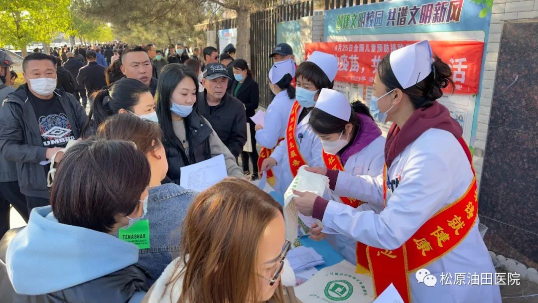4月25日是全国第37个儿童预防接种日,宣传主题是 “主动接种疫苗,共享健康生活”。松原沿江社区卫生服务中心组织了护理人员走上街头,来到油田转井小学门口,利用家长接送孩子的当口,发放儿童预防接种宣传单,科普小册等,为孩子家长讲解儿童预防接种的好处、怎样接种、什么时候接种等科普常识。