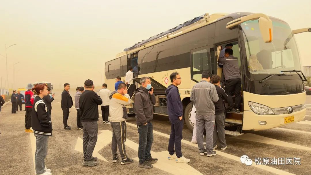 5月20日上午,松原吉林油田医院组织了由江南江北两家医院的23名专家组成的义诊团队,在医院党委书记、院长韩伟的带领下,冒着沙尘天气,乘坐大型特种现代数字化健康体检车来到吉林宁江经济开发区,为中车松原新能源装备产业园和松原正泰新能源产业基地两家企业的职工免费体检、义诊。