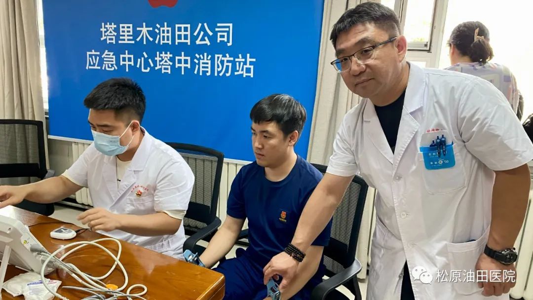 为了提高巡诊效率,他们兵分两路。7月30日,一组为中国石油测井公司吉林油田分公司川南测井项目部,检测员工24人。7月31日,另一组由川南飞往新疆库尔勒,为塔里木油田公司应急中心塔中消防站和塔三联执勤点的吉林油田消防队劳务服务员工进行健康巡诊。