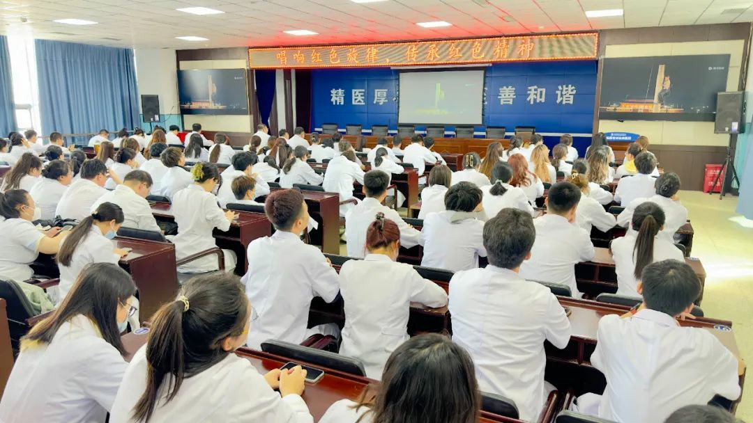 正值祖国74周年华诞,为加深新时代青年的家国情怀,传承红色基因,凝聚奋进力量,深化党史学习教育效果,激发医学生爱党、爱国热情,9月27日,松原吉林油田医院教务科组织132名吉林医药学院临床医学专业本科学生进行“唱响红色旋律,传承红色精神”唱红歌与观影活动。