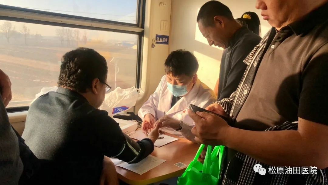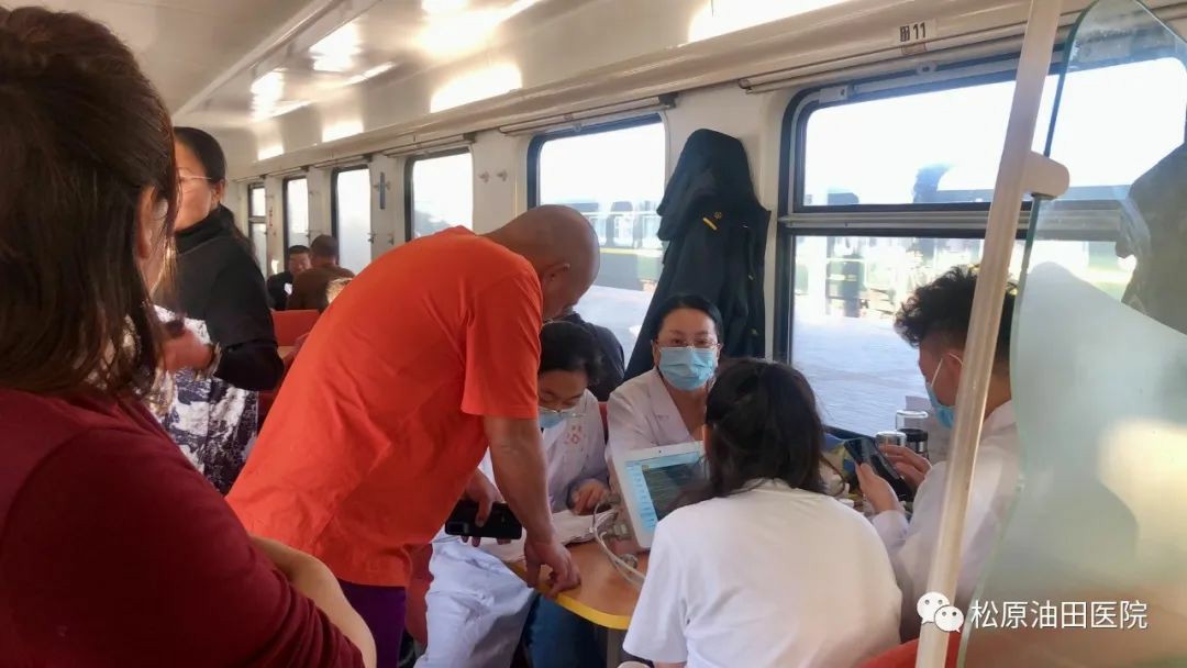 经过8天的艰苦跋涉,截止11月18日,现场检测任务基本结束。医护团队乘坐接送长庆劳务员工换岗的专列(银川--松原),列车行驶33个小时,在火车上继续完成检测任务,处理应急事件,完成最后一拨的健康保障。